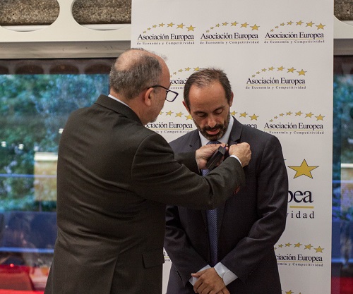 En el evento, además, se nombró Consejero de Honor de la Asociación Europea de Economía y Competitividad a Kike Sarasola por su trayectoria como empresario y fundador de la cadena hotelera Room-Mate Hoteles.