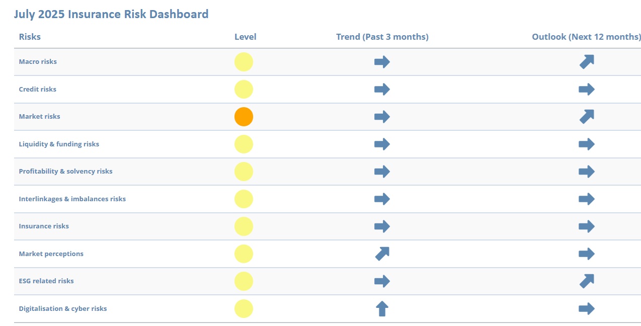 El informe, que se basa en datos de Solvencia II del primer trimestre de 2025 y en indicadores de mercado correspondientes al segundo trimestre, identifica riesgos que requieren especial atención en los próximos meses, pese a la aparente estabilidad de algunos indicadores clave.