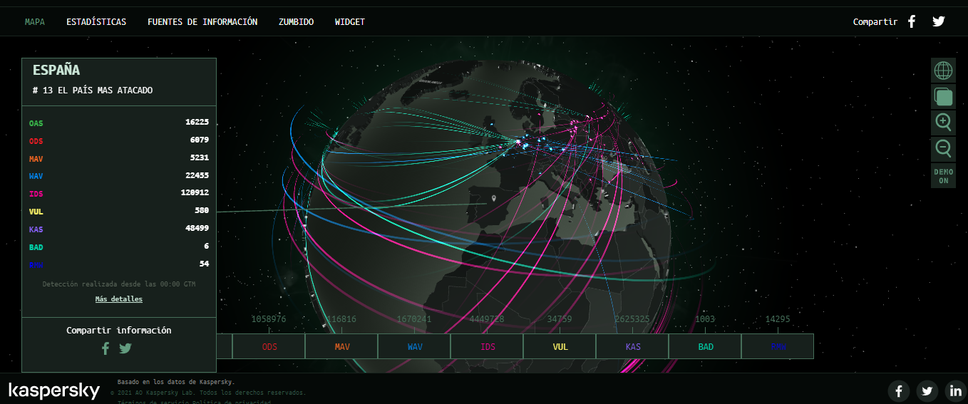 Rusia, con casi 40.000, es en estos instantes el país más ciberatacado del mundo. El problema es que España está en el puesto 13º y aunque parezca mucha la diferencia es muy estrecha: hace unos minutos, la cifra de ciberataques era de casi 14.000. Y la cifra aumenta por minuto, con graves consecuencias.