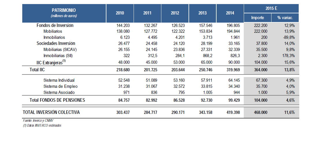 En cambio, se espera que el patrimonio aumente entre 4.000 y 5.000 millones de euros, en torno a un 4,6% más. España está aún lejos en comparación con otros países y “hay mucho que hacer en esta industria”. Una parte importante podría venir de los fondos de empleo, que en 2014 prácticamente no han crecido.