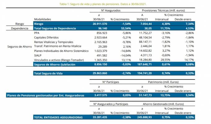 Por otro lado, los seguros de Dependencia también cotizan al alza y sus asegurados han aumentado un 53,54% respecto a 2020 alcanzando casi los 100.000 asegurados.