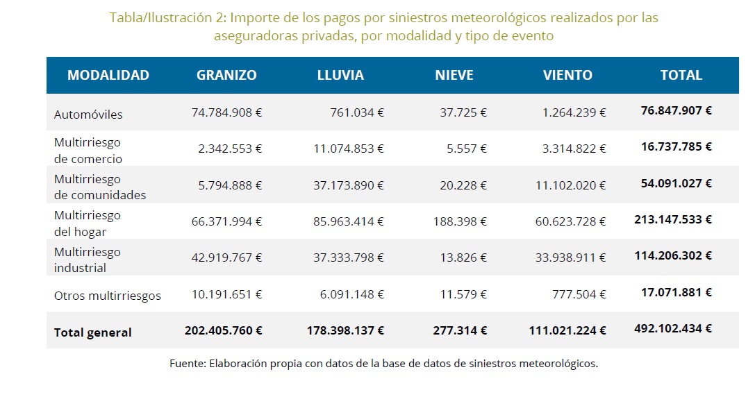 Las aseguradoras españolas han pagado 492 millones de euros en 2025 para cubrir los daños causados por más de 628.800 siniestros provocados por fenómenos meteorológicos, según datos de Unespa. Esto equivale a 1.723 sucesos y 1,34 millones de euros de coste cada día, con un coste medio por incidente de 783 euros.