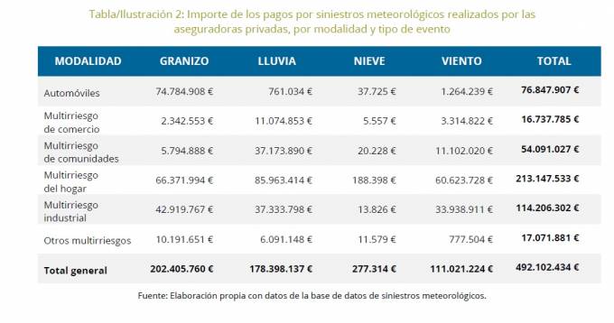 Aunque una parte importante de los siniestros son asumidos por el CCS -los derivados de siniestros extraordinarios- aquellos percances derivados de la nieve, el granizo, la lluvia o los vientos inferiores a 120 km/h son asumidos por las aseguradoras privadas.