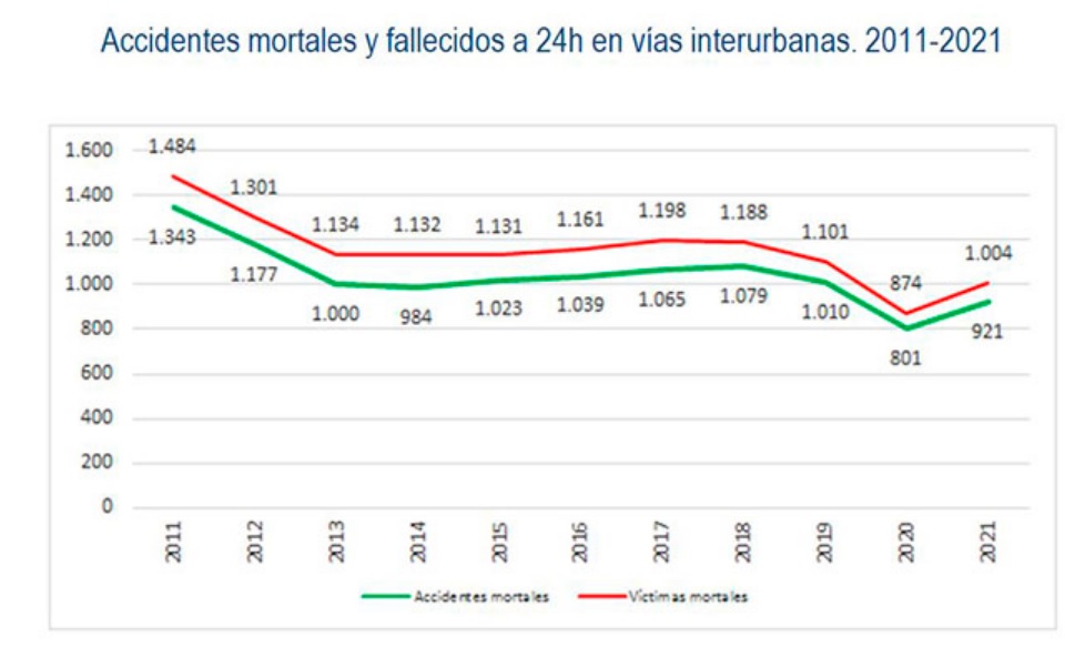 En 2021, según el balance provisional, han fallecido en las carreteras españolas 1.004 personas y otras 3.728 resultaron heridas graves en los 921 siniestros producidos. El descenso respecto a 2019 es del 9% -97 fallecidos menos- y sitúa al año que acaba de terminar en el segundo mejor año de la serie histórica por detrás de 2020 –año cuyas cifras se han visto distorsionadas por la pandemia-. La cifra de heridos graves también se ha reducido en 705 personas, un 16% menos a la registrada en 2019 (4.433).