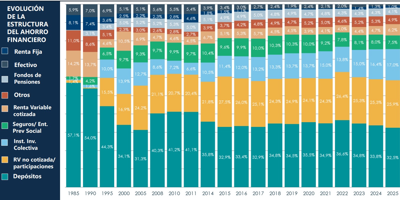 Las familias españolas han dedicado el 7,5% de sus ahorros a seguros en 2025, lo que supone 9.372 millones de euros, según datos facilitados por el Banco de España y recogidos por Inverco. A Fondos de Pensiones, por su parte, han dedicado el 4,1% de su ahorro.