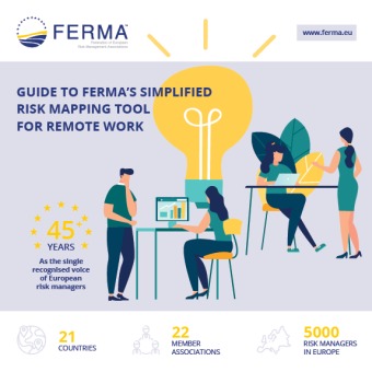 Ferma ha presentado hoy una nueva herramienta de gestión de riesgos para el teletrabajo. Se trata de una guía simplificada para el 'mapeo' de riesgos para esta nueva fórmula de trabajo ampliada como consecuencia del Covid-19. Explica la federación europea que el proyecto surgió de un debate interno donde los gerentes de riesgos de varias empresas manifestaron que aunque venían usando esta fórmula la pandemia ha obligado a multiplicar estas acciones. En este debate surgieron asuntos como la seguridad en el lugar de trabajo y los riesgos cibernéticos, especialmente en el contexto de la expansión de la digitalización que aceleró el covid.