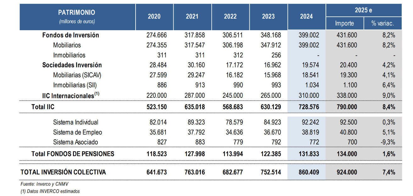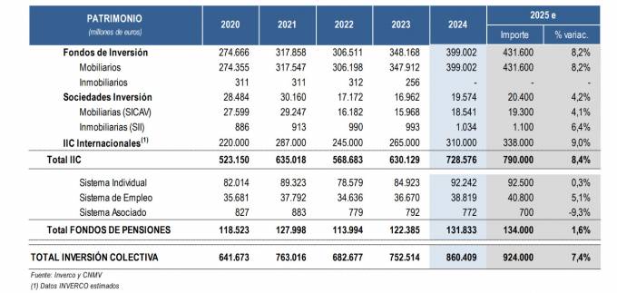 Por su parte, las Instituciones de Inversión Colectiva (IIC) se incrementarán hasta los 790.000 millones, con un avance del 8,4%.