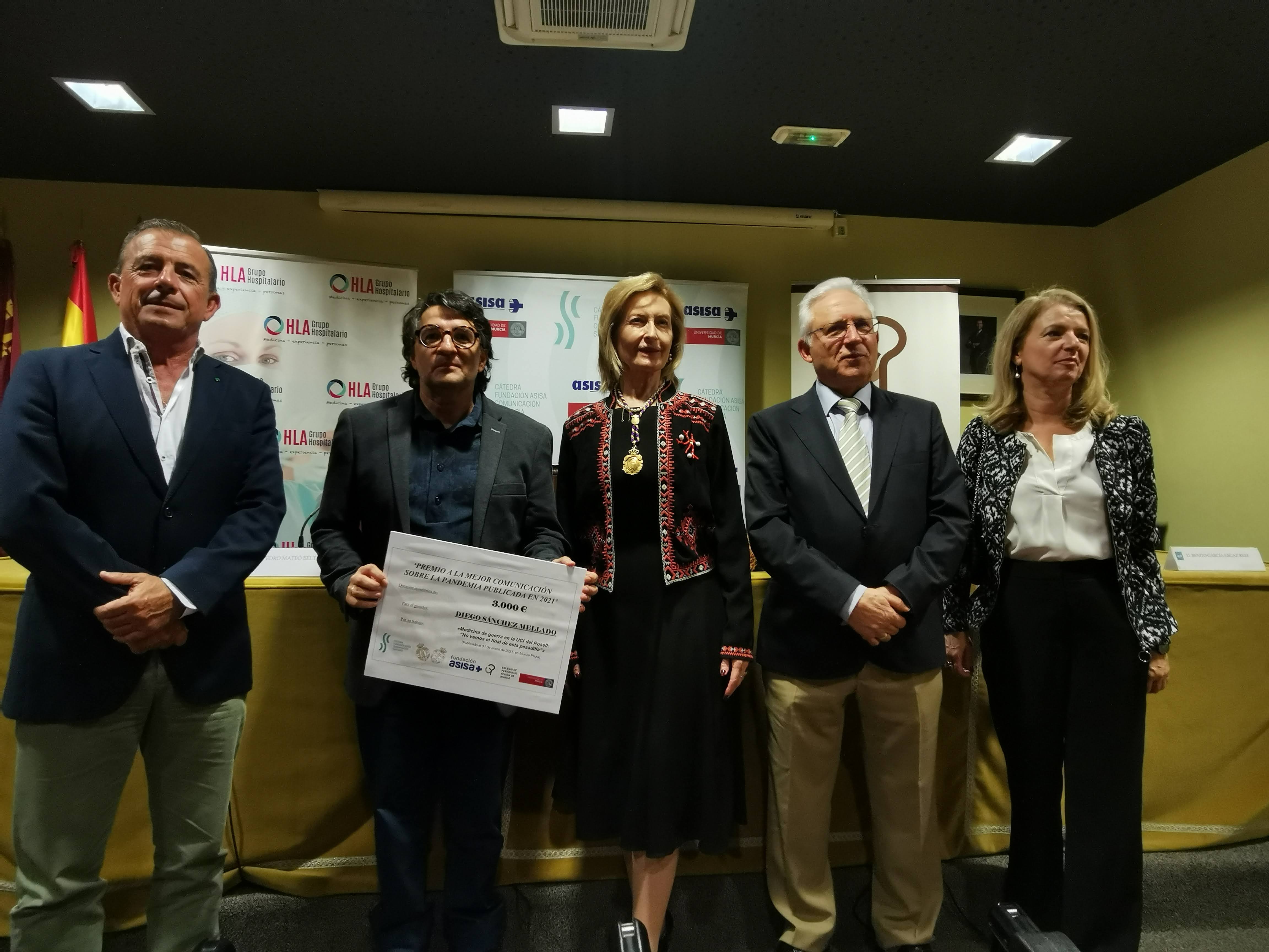 La Cátedra Fundación Asisa de Comunicación Sanitaria de la Universidad de Murcia y la Real Academia de Medicina y Cirugía de Murcia, con la colaboración del Colegio Oficial de Periodistas de la Región de Murcia, han entregado el 'Premio a la mejor comunicación sobre la pandemia publicada en 2021' al periodista Diego Sánchez Mellado, redactor y delegado en Cartagena del diario digital Murcia Plaza, por su artículo 'Medicina de guerra en la UCI del Rosell: "No vemos el final de esta pesadilla"', publicado el 31 de enero de 2021.
