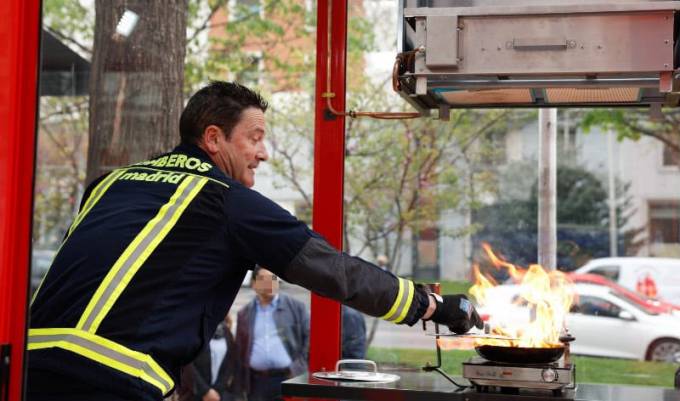 Fundación Mapfre y el Cuerpo de Bomberos del Ayuntamiento de Madrid se han unido para fomentar la prevención de incendios en el hogar. Para ello, han instalado un aula móvil experimental para explicar de forma visual algunas de las situaciones más frecuentes que pueden provocar un incendio en la vivienda e informar de cómo se puede extinguir ese fuego. Esta aula está ubicada en el Paseo de Recoletos de Madrid.