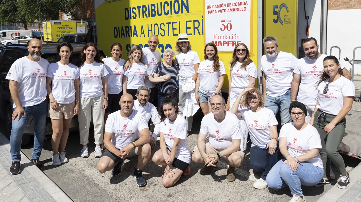 Fundación Mapfre entregó más de 10.000 kilos de comida, entre alimentos frescos y no perecederos, para apoyar a la Asociación Pato Amarillo de Madrid, entidad que ayuda a 300 familias al mes en el madrileño barrio de Orcasitas.