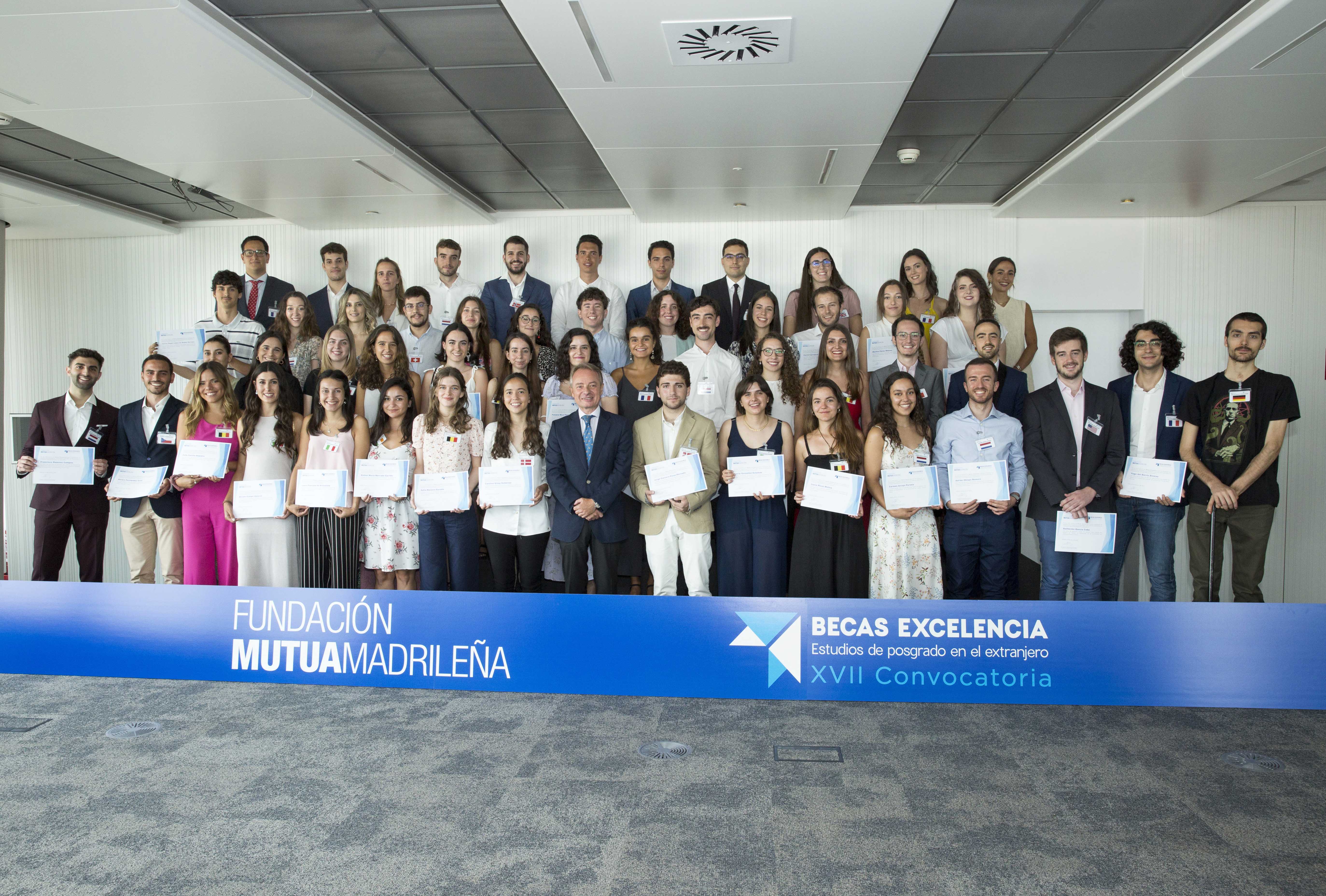 Por decimoséptimo año consecutivo, Fundación Mutua Madrileña ha concedido un total de 57 Becas Excelencia para financiar estudios de posgrado en el extranjero a los hijos de sus mutualistas con al menos 20 años de antigüedad.
