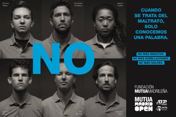 Tenistas como Feliciano López, Simona Halep o Dominique Thiem se han unido a la iniciativa de Fundación Mutua Madrileña con un rotundo 'NO' a la violencia de género.