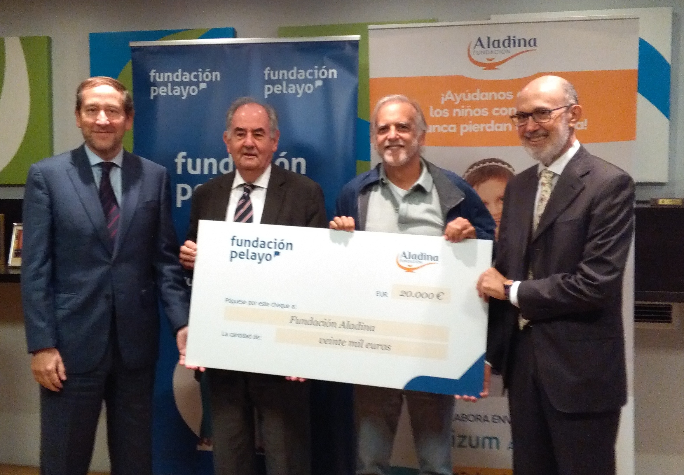 Para formalizar la participación de Fundación Pelayo en este proyecto Alvaro Gil-Robles Gil-Delgado, de Fundación Pelayo, y Francisco Arango, de Fundación Aladina, han sellado un convenio de colaboración. El acto contó también con la presencia de José Boada, presidente de honor de Fundación Pelayo, y Francisco Lara, presidente de Grupo Pelayo.