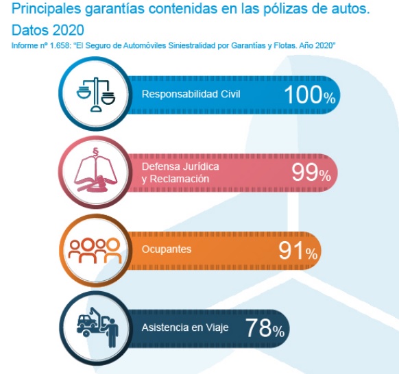 Al margen de la garantía de Responsabilidad Civil que incluyen el 100% de las pólizas de Autos, entre las garantías opcionales, Defensa Jurídica es la más demandada (99%) seguida de Ocupantes (91%) y Asistencia en Viaje (78%).