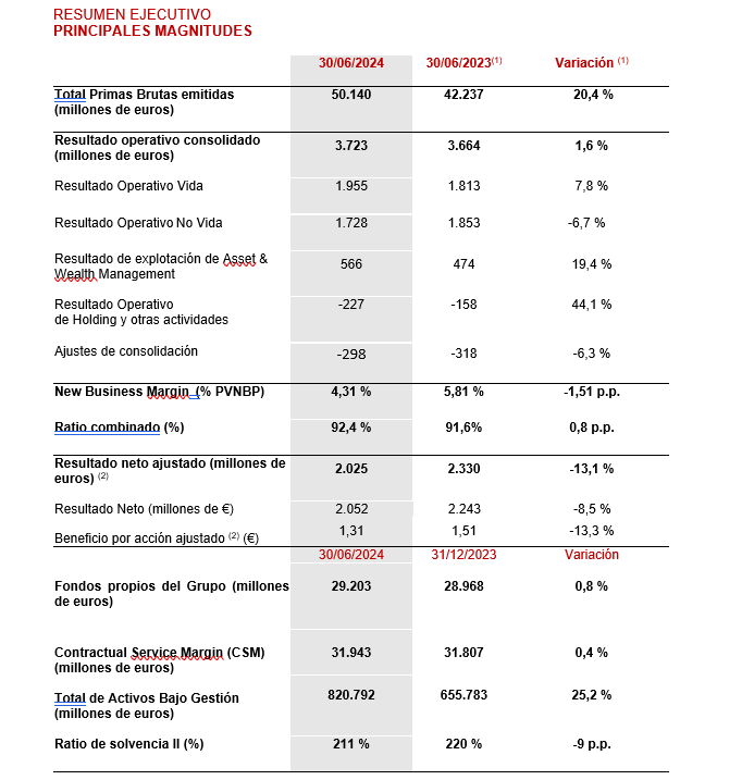 hace un año. Por líneas de negocio, Vida mejoró un 26,6% mientras que No Vida lo hizo un 10,5%.
