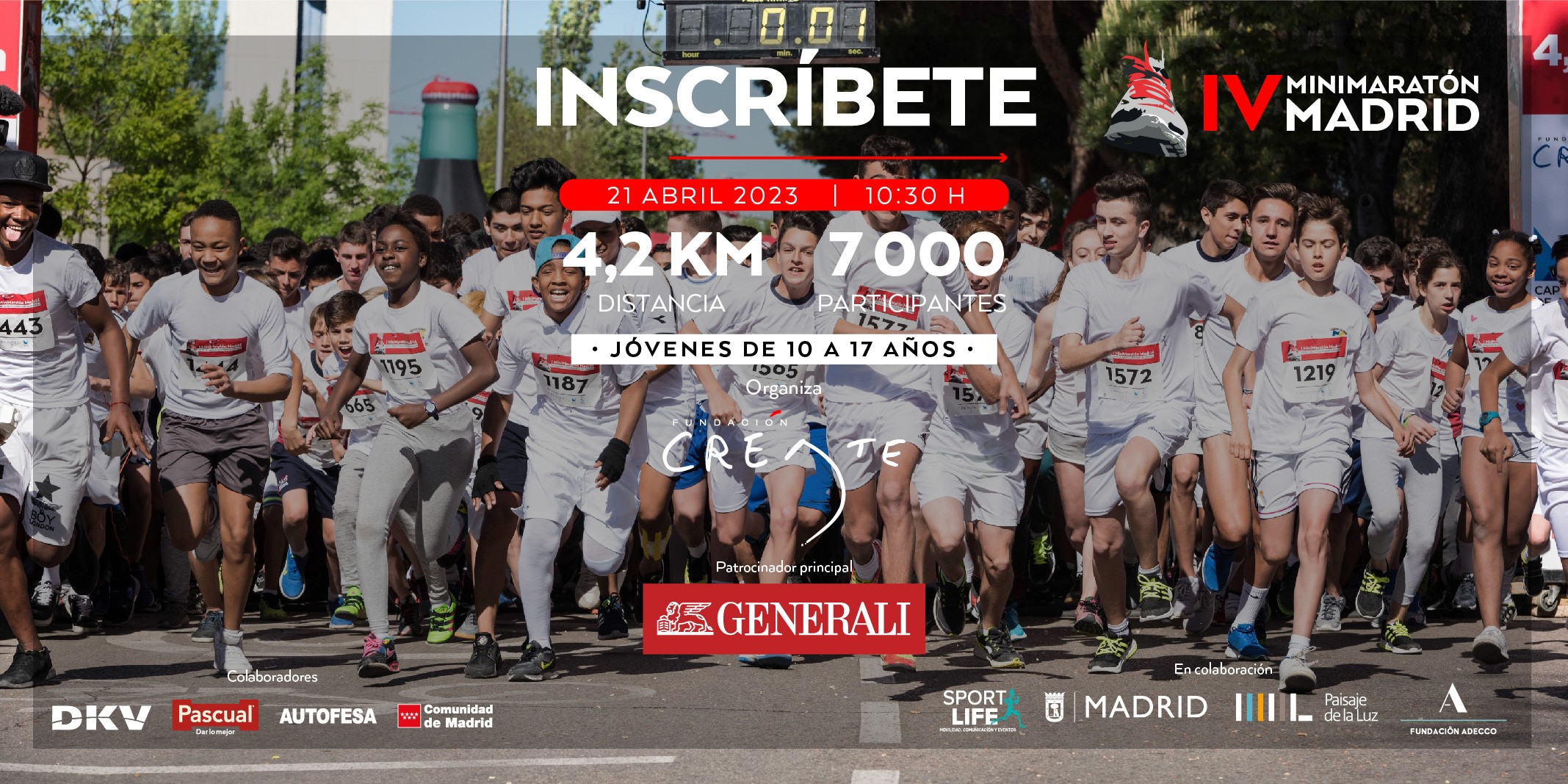 La IV MiniMaratón Madrid está organizada por Fundación Créate, en colaboración con Sportlife Ibérica, Ayuntamiento de Madrid y Fundación Adecco además de DKV, Pascual, Autofesa y Comunidad de Madrid como colaboradores. Generali se suma a esta edición como patrocinador principal para apoyar la promoción de la actividad física en las niñas, la sostenibilidad, la inclusión, así como la salud física y emocional de los jóvenes, valores con los que Generali se identifica al 100%.