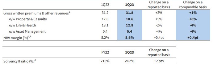 Grupo AXA incrementa un 1% su volumen de ingresos en el primer trimestre de 2023
