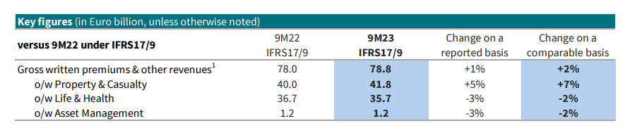 Grupo AXA ha dado a conocer los indicadores de su firma hasta el tercer trimestre donde da cuenta de los ingresos del grupo. Hasta septiembre el grupo registra unos ingresos por primas de 78.800 millones de euros, lo que indica un avance del 2%, respecto al mismo periodo del año anterior.