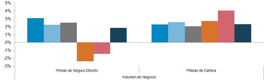En cuanto a las primas, Hogar crece un 3%, seguido de Comunidades con un aumento del 2,5% y Comercio del 2,2%. Industrial por su parte retrocede un 2,4%, al igual que Otros Multirriesgos que baja un 1,4%.