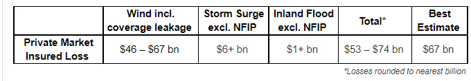 Se empiezan a conocer los primeros datos de daños asegurados ocasionados por el huracán Ian que atravesó Estados Unidos. La firma RMS señala que los daños estarían entre los 53.000 y los 74.000 millones, alcanzando una estimación de 67.000. Señala también que el programa nacional de inundaciones (NFIP) ha señalado que las