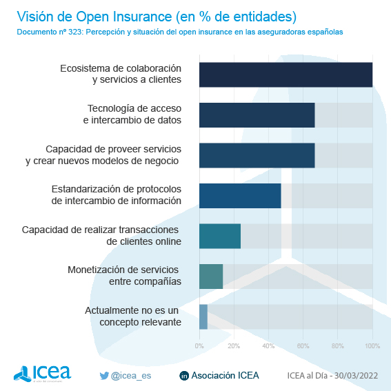 "La amplitud del concepto se refleja en la opinión que tienen del mismo la mayoría de las aseguradoras españolas, que consideran Open Insurance como un ecosistema de colaboración y servicios a clientes. Sin embargo, al intentar concretar más, algunas entidades ponen el foco en la parte tecnológica y otras en la de servicios y negocio, aunque también hay coincidencias en las dos visiones", resume ICEA.