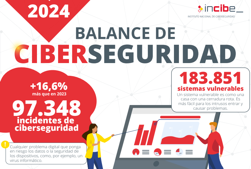 El Instituto Nacional de Ciberseguridad (Incibe), entidad dependiente del Ministerio para la Transformación Digital y de la Función Pública, ha presentado su balance de actividad en materia de ciberseguridad durante 2024. En total, a lo largo del año pasado, el Incibe a través de su CERT -equipo de respuesta a incidentes de ciberseguridad- gestionó 97.348 incidentes, lo que representa un aumento del 16,6% en comparación con 2023.