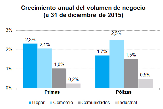 Todas las modalidades de los seguros Multirriesgos crecieron en primas y pólizas en 2015. En primas, Hogar fue la que más creció (+2,3%) mientras en pólizas el mayor avance lo registró Comercio (+2,5%), según ICEA. La mayor siniestralidad se registró en Industrial es la que arroja una tasa siniestral más elevada, con el 70,39% y Comunidades la más baja, con un 48,38%. La facturación en Multirriesgos en 2015 fue de 6.658,7 millones de euros, el 1,7% más que un año antes.