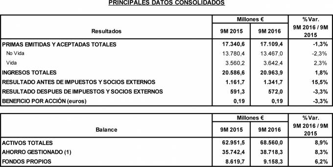 La entidad informa de que en 2015 se registraron 2 acontecimientos extraordinarios que afectaron de manera relevante al resultado de ese ejercicio: la venta del negocio asegurador conjunto con CatalunyaCaixa y el coste extraordinario de las tormentas de nieve en EEUU. Descontando ambos efectos, el beneficio atribuido consolidado del grupo hubiese crecido en los nueve primeros meses de este año un 5,5%.