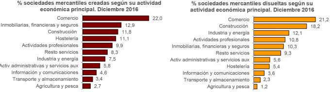Por sectores, el 22% de las sociedades creadas en diciembre correspondió a Comercio y el 11,8% a Construcción. El apartado en el que el INE incluye juntas a inmobiliarias, financieras y seguros acaparó el 12,9% de las nuevas empresas. Esas sociedades registraron un capital suscrito de 180,92 millones de euros, y un saldo neto de 680 millones.
