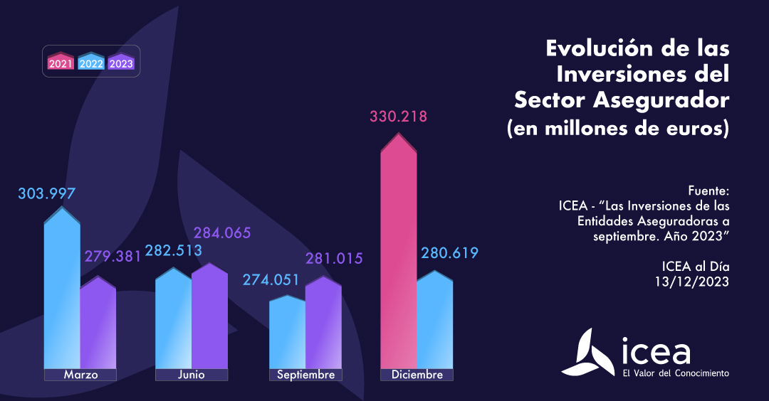 Al cierre del tercer trimestre, el volumen estimado del total de las inversiones del sector asegurador español se ha situado en 281.015 millones de euros, lo que significa un 2,5% más que en el mismo periodo del ejercicio anterior. Si bien, respecto al trimestre pasado, se reduce ligeramente.