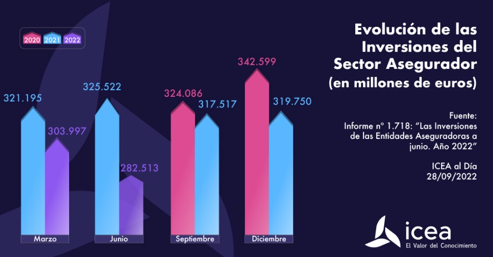 Las inversiones del sector asegurador se situaron en los 282.513 millones de euros a junio de 2022. Supone una caída del 13,21% respecto al mismo periodo de 2021 en el que las inversiones se situaron en 325.522 millones de euros.