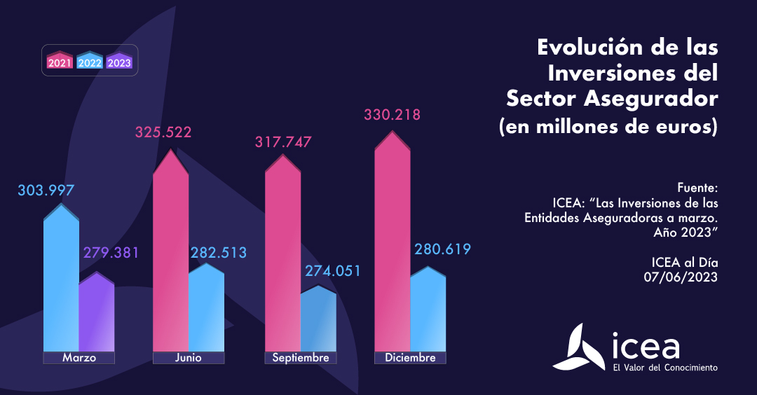 Las inversiones del seguro español continúan a la baja. Si en 2022, la caída fue de un 15%, en el primer trimestre ha sido de un 8,1%, situándose el volumen total de las inversiones del sector asegurador en 279.381 millones de euros, según datos facilitados por ICEA.