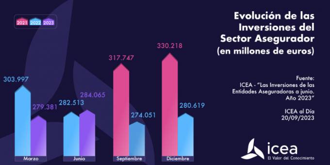 El sector asegurador cerró el mes de junio con un volumen total de inversiones de 284.065 millones de euros. Esta cifra es un 0,5% mejor que los 282.513 millones que marcaba el sector en junio de 2022. Del total de inversiones, según los datos de ICEA, el 49,3% están representadas por la cartera de Vida, mientras que el 15,2% corresponde a la inversión de No Vida, un 3,4% a los fondos propios y el 32,1% restante lo acapara la cartera general.