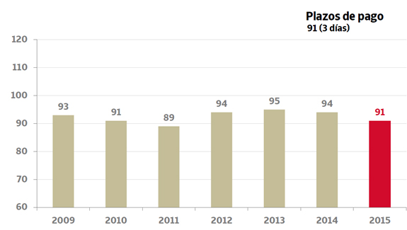 Los plazos de pago de las empresas registraron en 2015 una mejoría de 3 días y se situaron en una media de 91 días. Esta reducción se extiende a todas las tipologías de empresa, aunque los plazos de pago se sitúan en niveles de 2010.