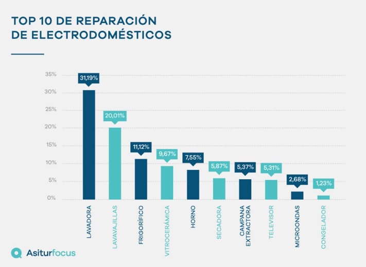 El 31,19% de las averías las han sufrido las lavadoras, el 20% el lavavajillas y el 11,12% el frigorífico. En 4º lugar la vitrocerámica con el 9,6% de las averías y el horno con el 7,55%. Y es que el mayor tiempo que pasamos en casa y el consiguiente incremento de las tareas del hogar han provocado, entre otras cosas, un considerable aumento de la demanda y uso de todo tipo de aparatos electrodomésticos así como de sus averías.