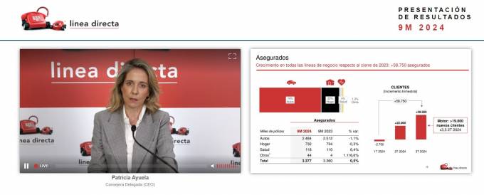 La consejera delegada de Línea Directa, Patricia Ayuela, no se ha podido mostrar más satisfecha de los resultados de la compañía obtenidos hasta septiembre que calificó como "muy positivos". Sin duda, la actitud de la compañía ha cambiado en los últimos 5 trimestres y eso se nota. Con todo, Ayuela quiere más y asegura que "trabajamos con determinación para seguir mejorando".