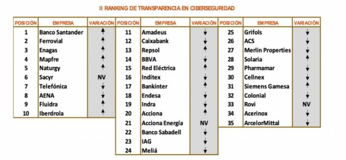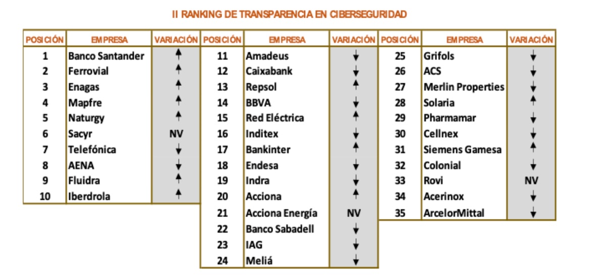 Mapfre es la 4º compañía del IBEX en el ranking publicado por la correduría Watch&Act Protection Services sobre transparencia en ciberseguridad. La clasificación está liderada por Banco Santander, Ferrovial y Enagás. Por sectores, los servicios financieros y seguros son los más transparentes, seguido, en este orden, por los servicios de consumo, el sector energético, las telecomunicaciones, la construcción, los bienes de consumo y el sector inmobiliario.