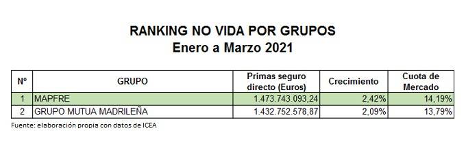 A nivel de compañías, Mapfre recupera el liderazgo en No Vida superando a Grupo Mutua Madrileña; ambas entidades registran avances en primas superiores al 2%. Además, hay más cambios en el ranking entre los primeros puestos. A nivel general, los 10 primeros grupos en No Vida comercializan más del 66% del total del negocio; el Top5 suscribe casi el 48%.