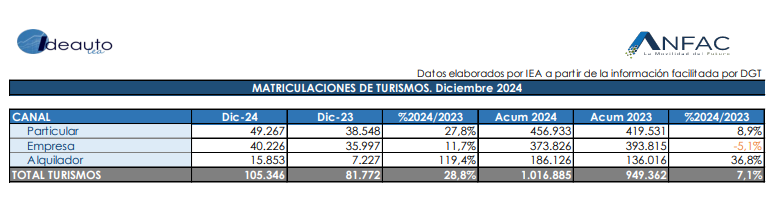 El año 2024 ha cerrado con un crecimiento del 7,1% en las ventas de turismos, registrándose un total de 1.016.885 matriculaciones, una cifra que no se veía desde antes del inicio de la pandemia, según datos facilitados por Anfac, Faconauto y Ganvam.