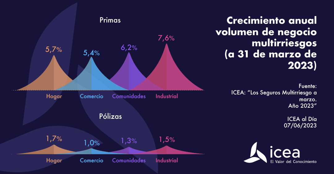 Ya se conocía la facturación de Multirriesgos y de todas sus modalidades al cierre del primer trimestre de 2023, pero no la evolución en cuanto a las pólizas. Ahora, el boletín semanal de ICEA ha informado también de que las pólizas en Multirriesgos crecieron un 1,6% de enero a marzo, con un comportamiento muy similar en todas las modalidades: Hogar (+1,7%), Industria (+1,5%), Comunidades (+1,3%) y Comercio (+1%).
