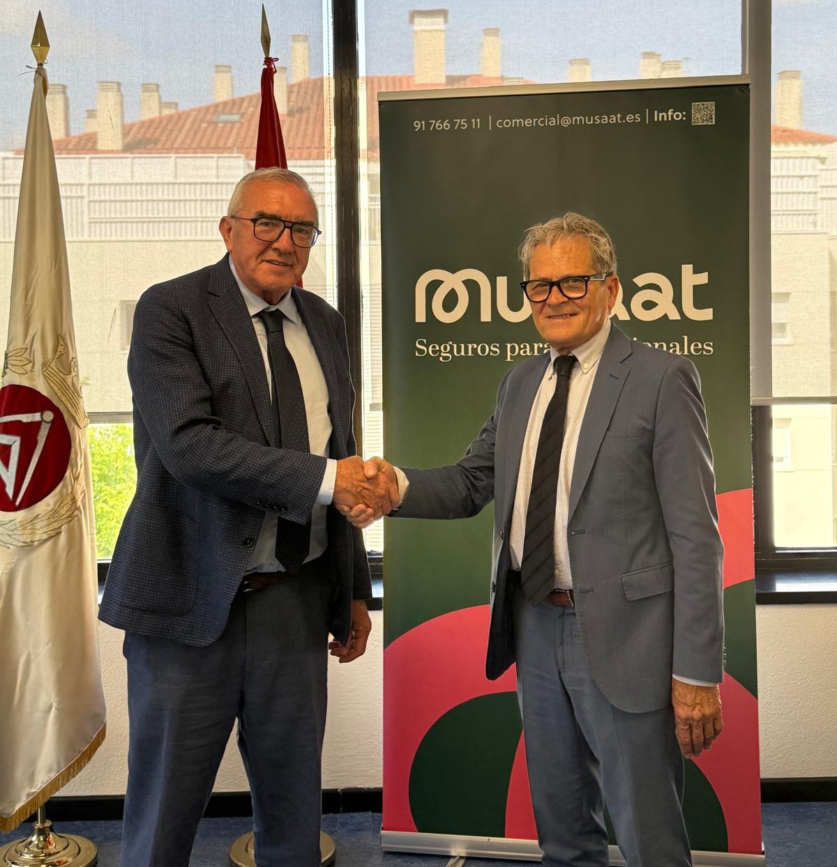 Antonio L. Mármol, presidente de Musaat, y José Manuel Larumbe, presidente de la asociación, han firmado la continuidad de la relación. Un acuerdo que "permitirá el desarrollo de iniciativas conjuntas destinadas a la formación continua de los profesionales y al impulso de acciones que mejoren la calidad técnica en los procesos constructivos".
