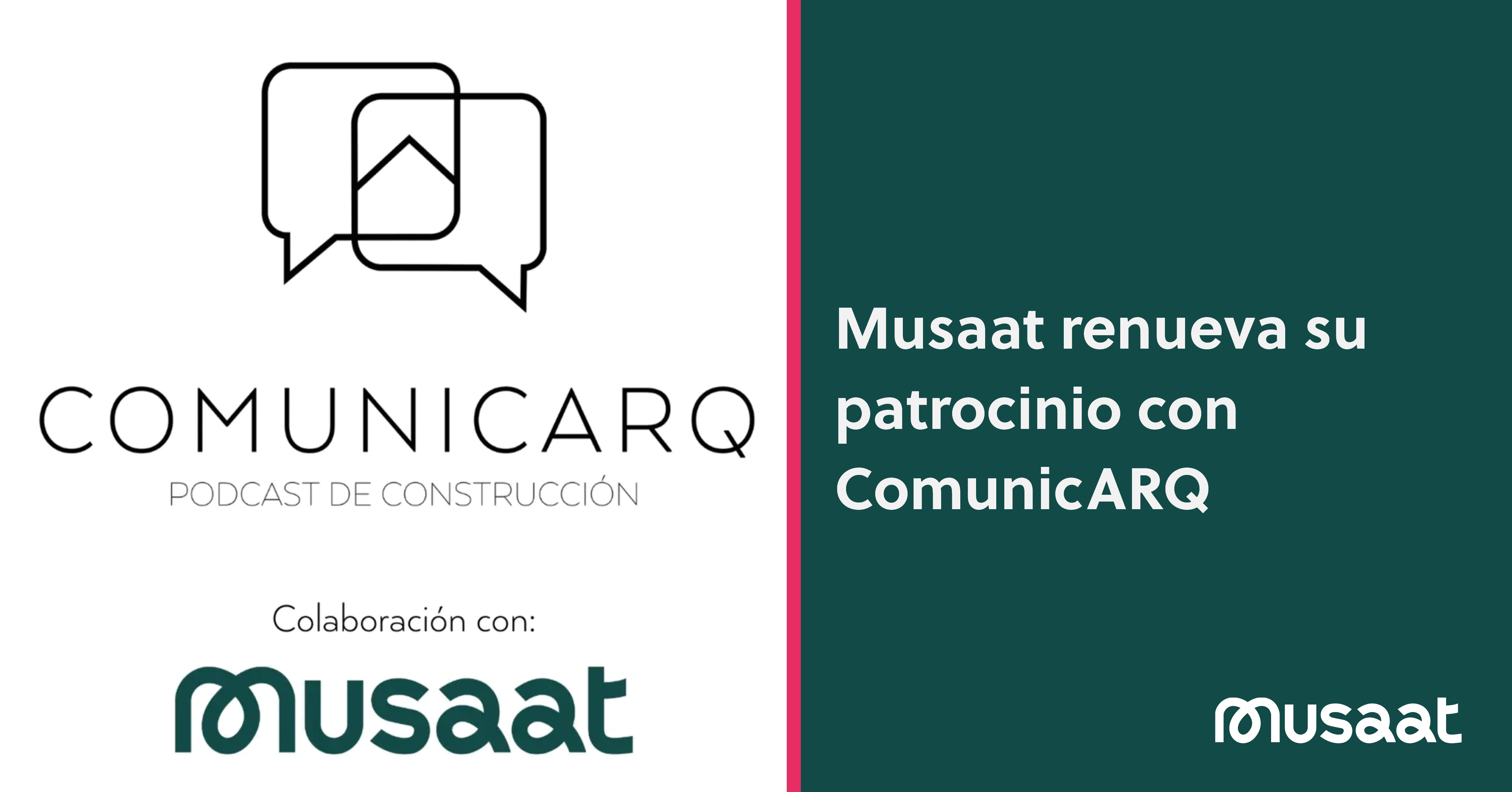 Musaat ha renovado su patrocinio con ComunicARQ, el podcast de la Arquitectura Técnica y del sector de la Construcción que, en tan solo tres años y tras cuatro temporadas, ha emitido más de 100 episodios y ha alcanzado una importante comunidad en Spotify, con más de 2.000 seguidores y más de 105.000 reproducciones, y en YouTube, con 27.000 visualizaciones en directo y más de 1.700 seguidores.