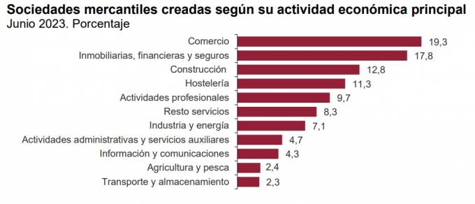 El 17,8% de las sociedades creadas en junio son inmobiliarias, financieras o relacionados con el seguro, se trata de la actividad en la que más compañías se han creado solo por detrás de Comercio con el 19,3%.