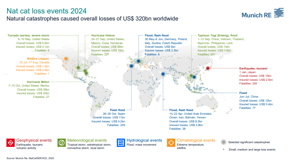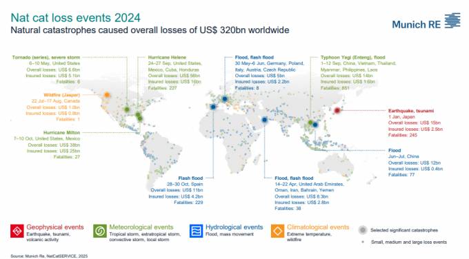 El 2024, el 5º año más catastrófico desde 1980 y el 3º más gravoso para el seguro mundial
