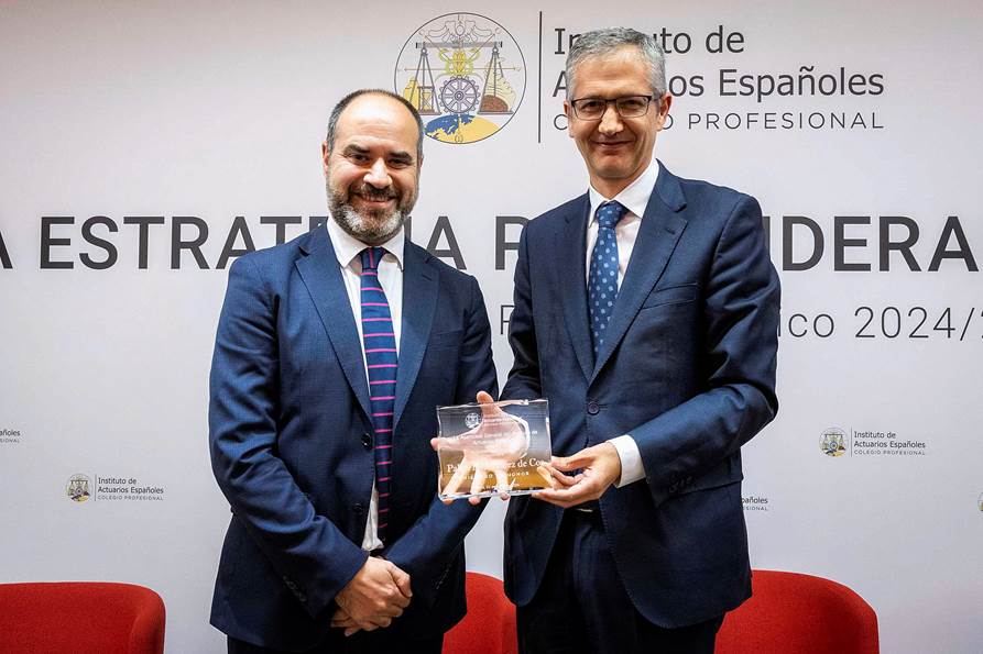 Finalmente, Pablo Hernández de Cos recibió la distinción de Actuario de Honor, reconocimiento que fue aprobado por unanimidad de la asamblea general del IAR del pasado 31 de mayo.