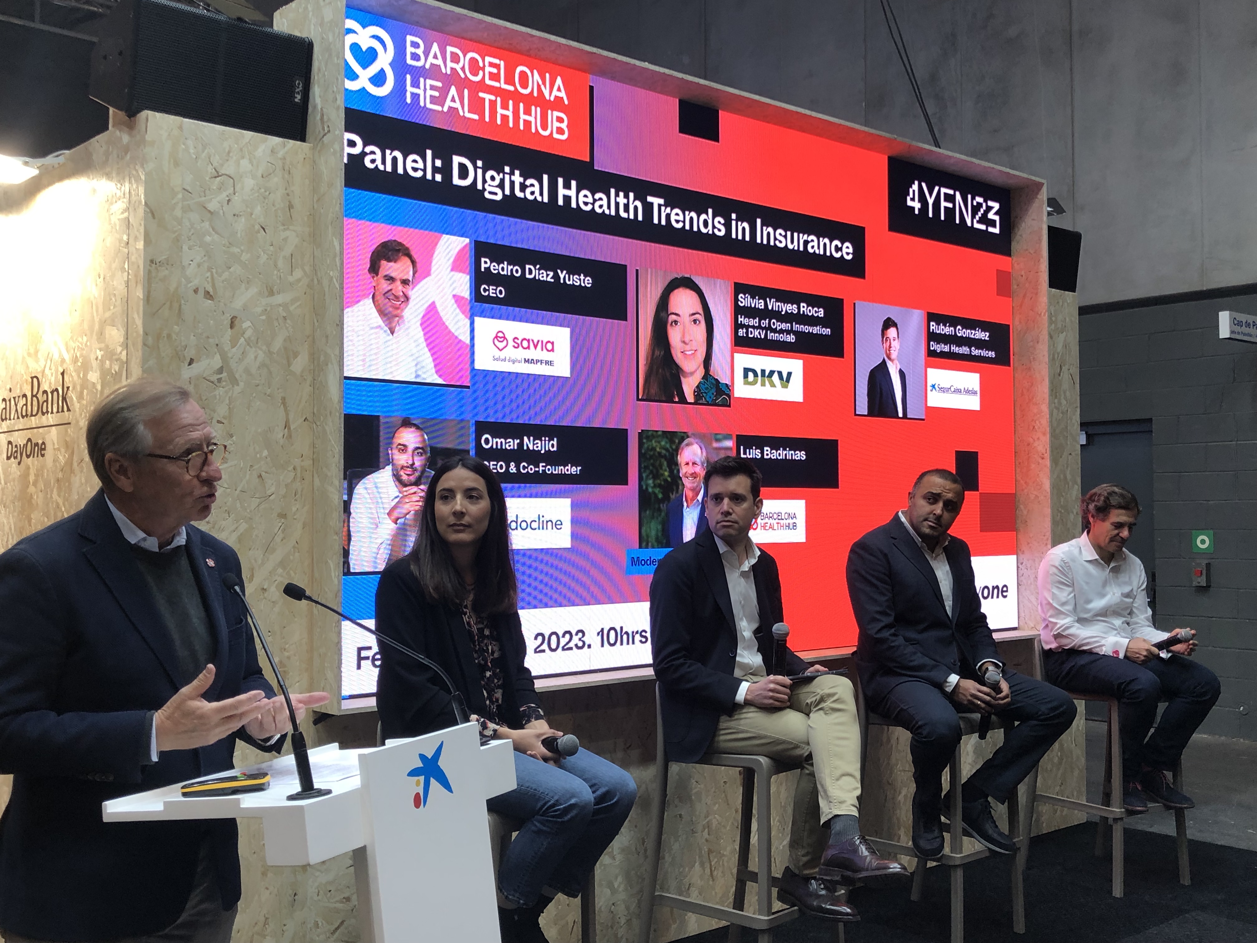 En la sesión moderada por Luis Bardinas, CEO de Barcelona Health Hub, han participado Pedro Díaz Yuste, CEO de Savia by Mapfre, Silvia Vinyes Roca, Head of Open Innovation de DKV, Rubén González, Digital Health Services de SegurCaixa Adeslas, Omar Najid, CEO & Co-Funder de Docline.