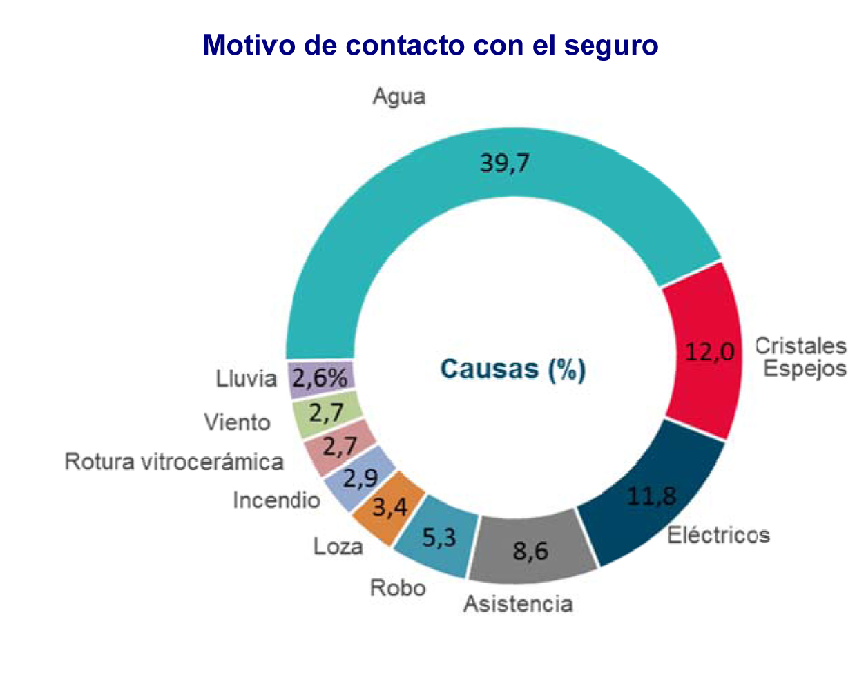 La principal razón por la que los españoles con seguro de Hogar se ponen en contacto con su aseguradora es para declarar daños por agua. Esta tipología concentra el 40% de los servicios demandados, seguida de rotura de cristales o espejos (12%), daños eléctricos (11,8%) o asistencia (8,6%).