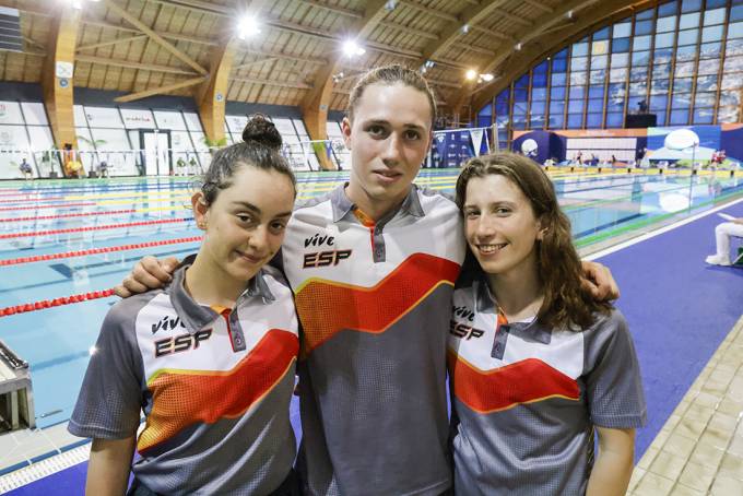 Los miembros del equipo AXA de Jóvenes Promesas de Natación participantes en el Mundial de Madeira Nahia Zudaire y Enrique Alhambra han vuelto a casa con 4 medallas.