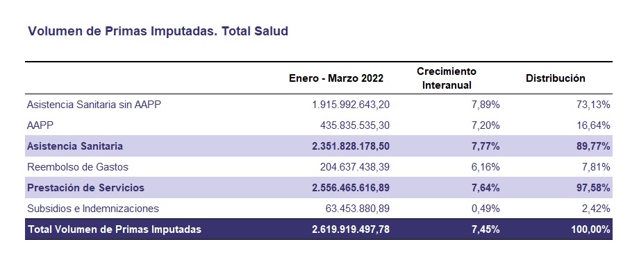 El 97,6% de las primas de Salud son de prestación de servicios