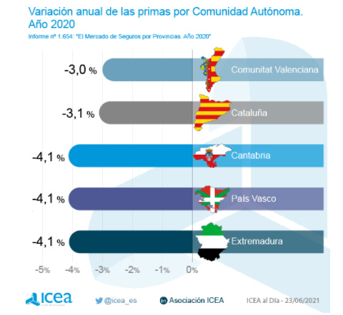 Los datos del sector asegurador ya los conocemos, 58.889 millones de euros en primas, con una caída del 8,2% respecto al año anterior. Ahora, con los datos de ICEA conocemos que esta caída fue generalizada en toda España puesto que lo hizo en todas las Comunidades Autónomas.